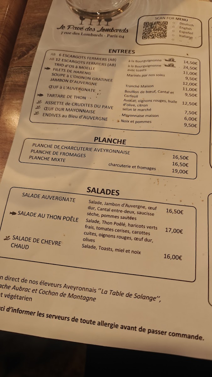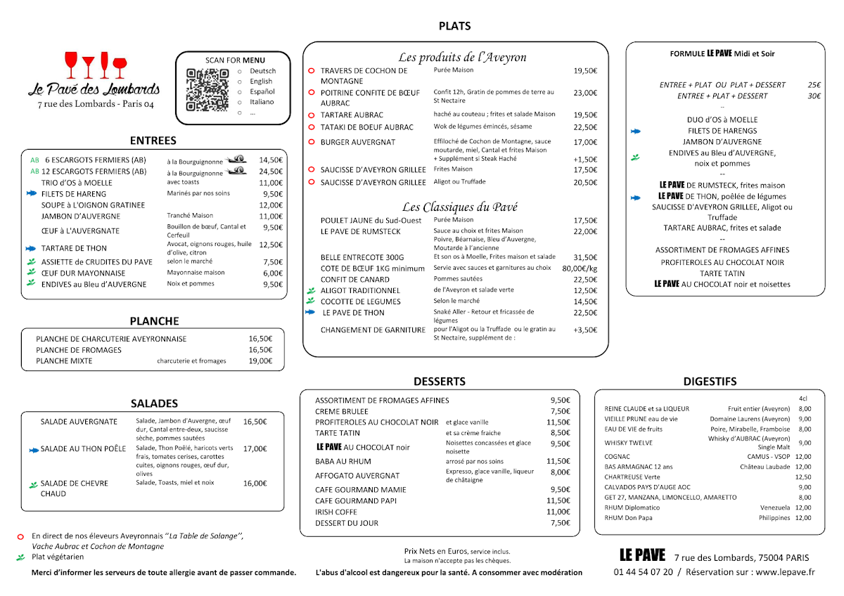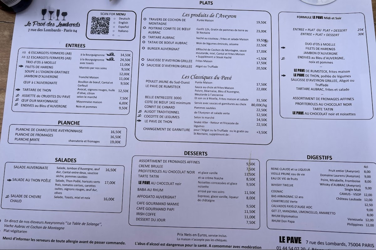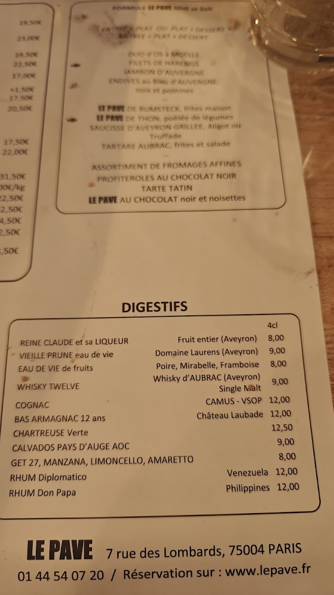Welcome to Le Pavé, a charming French restaurant nestled in the heart of Paris at 7 Rue des Lombards. Here, culinary tradition meets modern comfort, creating an inviting atmosphere perfect for any dining occasion. Guests rave about the aligot, a rich and creamy potato dish that has quickly become a highlight for many visitors, alongside savory options like the Saucisse D'Aveyron Grillee and Poulet Jaune Du Sud-Ouest, both praised for their tenderness and flavorful preparation.